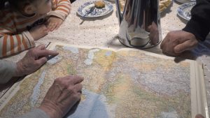 Encouraged by the old photos, Metka puts an old map on the table and the comparison of the two journeys begins. Mortaza, Sogra and Metka compare the length of the journey, the hours of driving, the countries they crossed, the things they took with them.